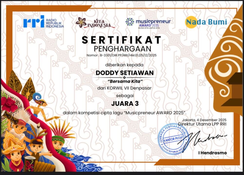 Prestasi membanggakan kembali ditorehkan oleh insan seni daerah ketika lagu berjudul Bersama Kita sukses meraih Juara 3 Tingkat Nasional dalam ajang Lomba Cipta Lagu Musicpreneur yang diselenggarakan oleh RRI Pusat Jakarta. Sebuah capaian yang tidak datang begitu saja, melainkan lahir dari proses kreatif, keyakinan, dan ketekunan yang panjang.