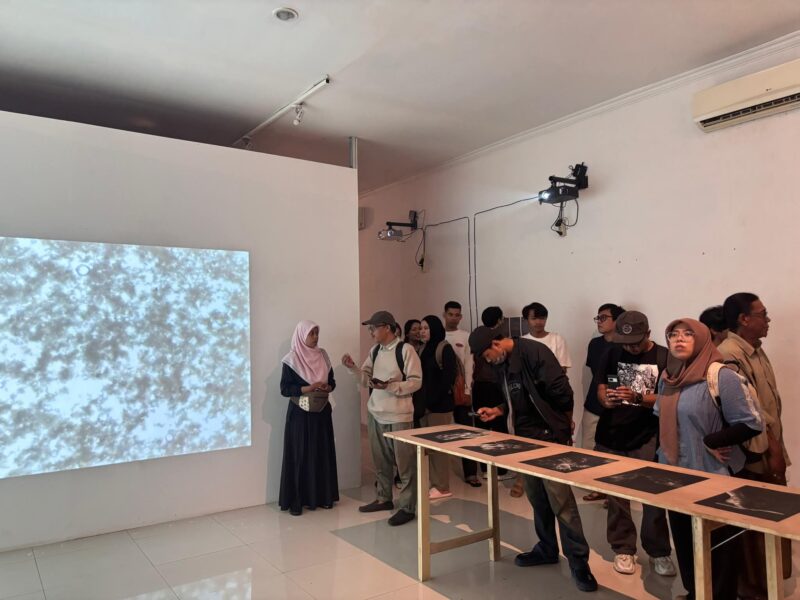Namun yang hadir malam itu bukan hanya visual. Bentang bunyi dari “ulah” Ronieste, seniman bunyi yang dikenal gemar meretas batas antara dengar dan rasa, ikut meruang, mengisi sela-sela gambar dengan lapisan auditif yang subtil.